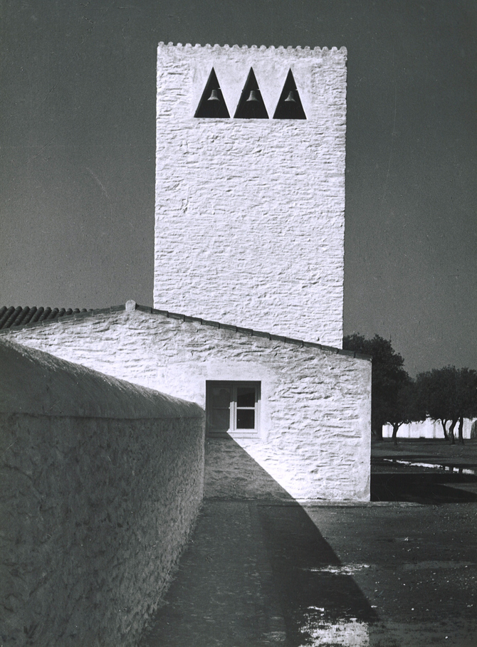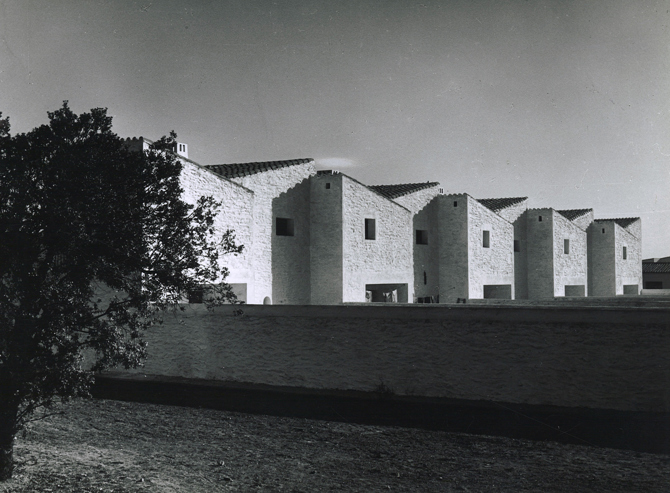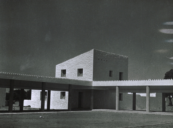 Los edificios públicos se disponen en el centro del poblado sobre una de las calles transversales que, al cruzarse con la de acceso, forman la plaza en la que se sitúan los edificios más importantes: la iglesia y el ayuntamiento, que se articulan mediante un porche en forma de “L” en cuyo vértice se unen las artesanías, la vivienda del médico y la clínica. Más al este se ubica el edificio social, y hacia el oeste, en la esquina inferior de la otra manzana, están las escuelas. Estos edificios, al igual que las viviendas, quedan también rodeados por la vegetación existente