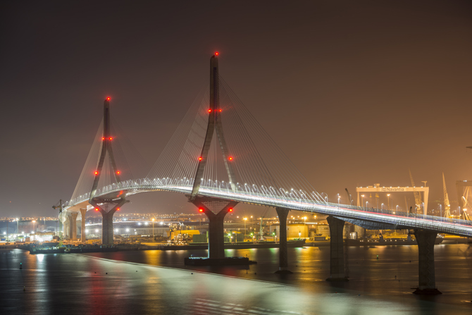 –Tramo Puente principal, es el puente atirantado situado sobre el canal de Navegación y sus compensaciones atirantadas. Longitud 1.180 m.