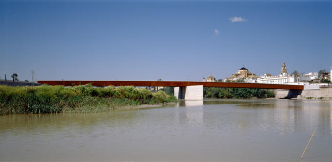 Nuestro Puente sobre el Guadalquivir, aguas arriba del Puente romano de Córdoba, fue seleccionado con el primer premio en 1987, entre las propuestas del Concurso Internacional de Ideas convocado por el Ayuntamiento de Córdoba. Una historia dilatada, hasta su realización en 2003, dieciséis años después, que forzó una no muy habitual reflexión sobre el paso del tiempo y a su vez la permanencia de la propuesta.