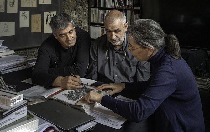 Rafael Aranda, Carme Pigem y Ramon Vilalta son arquitectos desde 1987 y fundan en 1988 RCR ARQUITECTES en su ciudad natal Olot. Son Premio Pritzker 2017, Premio Nacional de Cultura de Arquitectura 2005 de la Generalitat de Catalunya, Chevalier y Officier de l’ordre des arts et des lettres 2008 y 2014 de la Repúblique Française, Miembros honoríficos por la AIA American Institute of Architecture 2010, Miembros honoríficos por el RIBA Royal Institute of British Architects 2012, Medalla de Oro de l’Académie d’Architecture Francesa 2015 y Medalla de Oro de la Generalitat de Catalunya 2018 y Miembros Extranjeros de la Académie d'Architecture 2019. Desde 2020 forman parte de la colección permanente del Centro Pompidou.