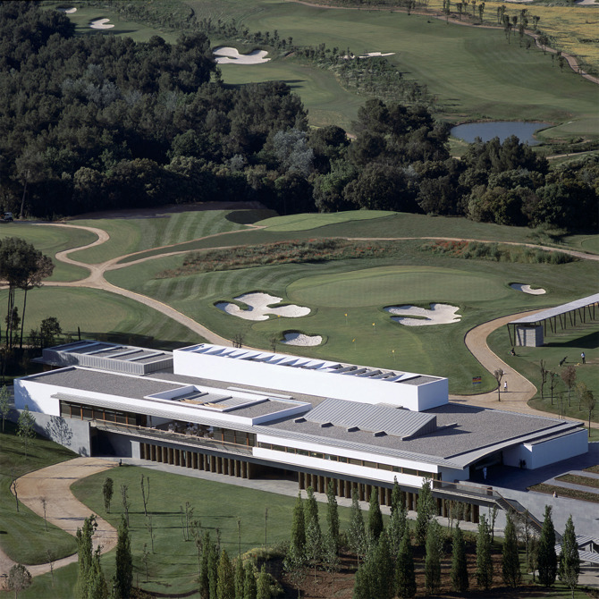 La nueva sede del Real Club de Golf El Prat se sitúa en unos terrenos en ligera pendiente flanqueados por zonas lineales de bosques de pinos y bancales aterrazados. El proyecto de la sede del club y los edificios anexos se concibe según el criterio de respeto e integración al conjunto del paisaje, de accesibilidad, comunicación y centralidad respecto al campo de juego.