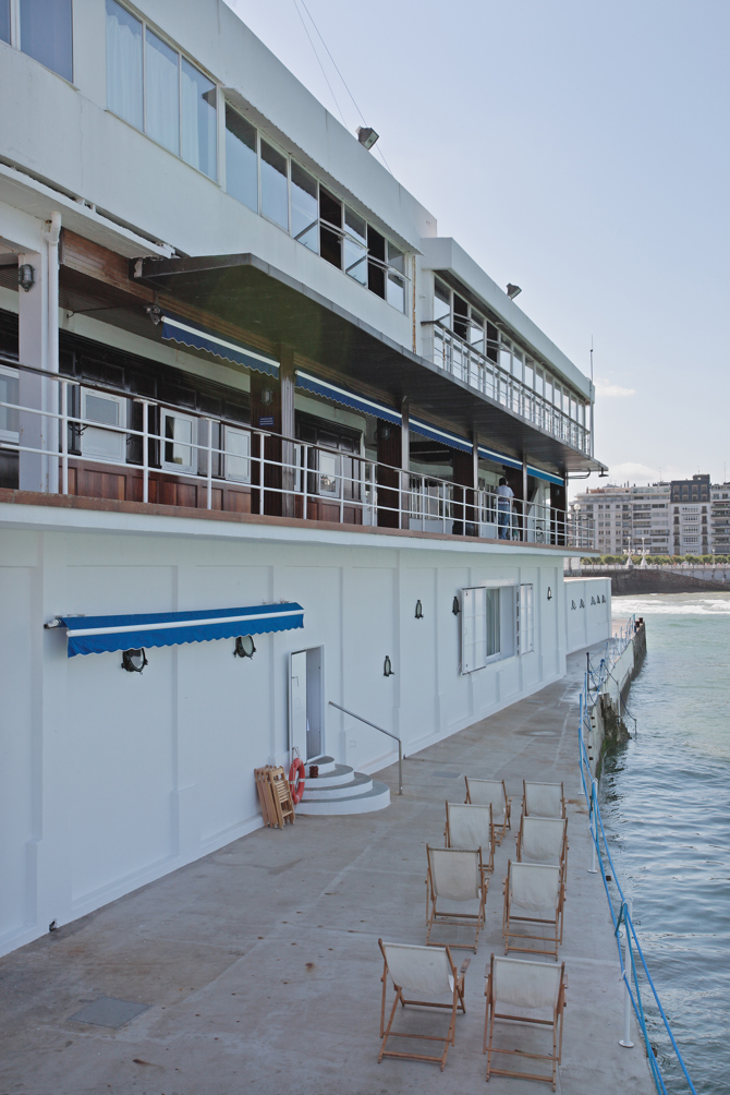 –En la primera de ellas, situada un metro por encima del paseo, desde el que se accede por medio de unas escaleras, se sitúan los elementos de programa propios de un club náutico: terrazas y salones.