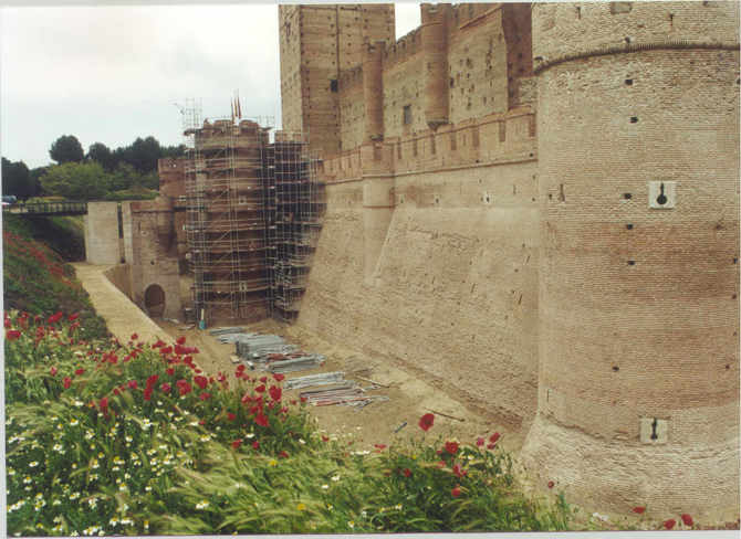 Se cometieron también trabajos de rejuntado y saneado de las fábricas de ladrillo de las fachadas exteriores del castillo por un proceso metodológico diseñado para conservar la estratigrafía muralla y las heridas históricas de guerra del edificio.