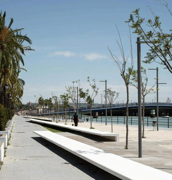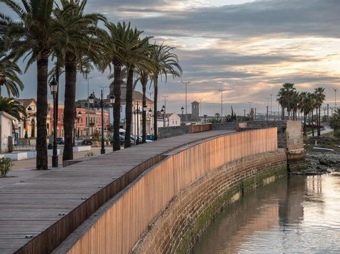 En el último siglo, la ribera del Guadalete a su paso por El Puerto ha sido el patio trasero de la ciudad, el lugar donde forma caótica se han venido resolviendo espacios de ocio, olvido o imperiosa necesidad. La gestión sostenible que caracteriza nuestra lucha contra el cambio climático ha revertido esa situación, llegando el momento de reconciliar la ciudad con su río y dar incluso un paso más, para convertir estos lugares en espacios activos, generadores de ecologías en el más amplio sentido de la palabra, a lo que contribuirá el empleo de pavimentos drenantes y la implantación de cargadores solares de patinetes.