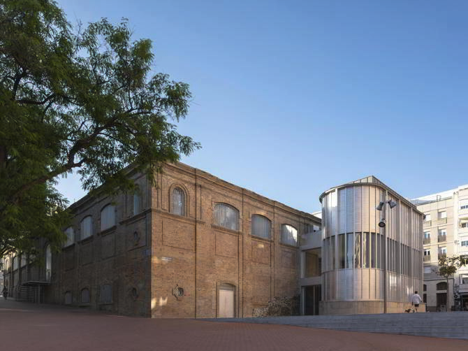Se pretende que la nueva construcción resuene con la preexistente a partir de su condición abstracta, ofreciendo así una respuesta conjunta al heterogéneo paisaje urbano. La geometría curva actúa como contrapunto a la solidez y estabilidad del mercado, mientras que los paneles de aluminio contrastan con la fábrica de ladrillo, al tiempo que establecen un diálogo con los elementos de fundición que protagonizan el espacio interior.