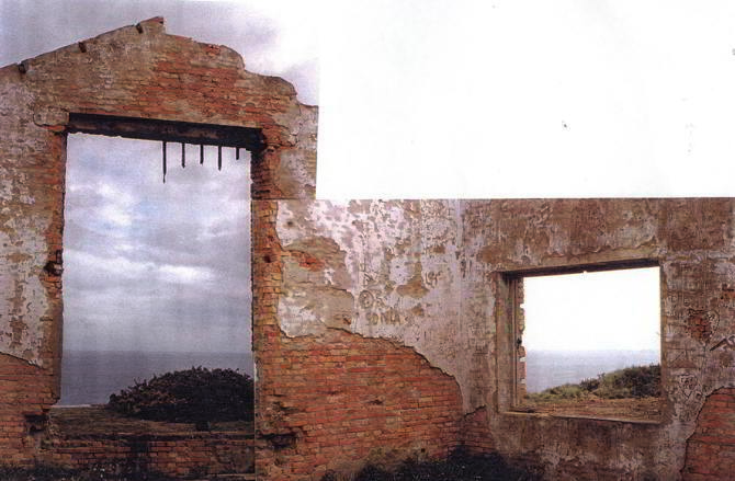 Las vistas son impresionantes, y la nave en ruinas, sin ventanas y sin techo —con los restos de una vida industrial—, son tremendamente evocadoras. No queríamos desaprovechar las posibilidades románticas, en el sentido de Sturm und Drang, del lugar, por lo que en principio el techo, como en el Pantheon, dejaba entrar la lluvia y el ruido del mar. Pero esto, muy atractivo para utilizar el sitio como sala de meditación, con la visión del mar realzada incluso por el encuadre de las ventanas desde adentro, y los restos en el suelo de este pasado industrial, no era aceptable como lugar de exposición controlado.