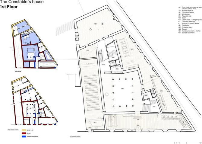 Según la investigación científica arqueológica y documental, el proyecto opta por recuperar todo lo posible del carácter original de casa-palacio renacentista, asignando nuevos usos a los espacios más adecuados disponibles. El vaciado y reconstrucción de los patios en el corazón del edificio permite organizar la estructura, las circulaciones y los espacios de servicio. Introduciendo un edificio dentro de otro, el nuevo da vida al antiguo.