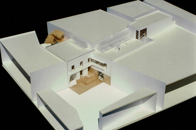 Obra de rehabilitación del edificio existente destinado a Ayuntamiento que debía ampliarse en el solar vecino colindante en las plantas superiores. En la planta baja existía y debía remodelarse el mercado municipal. En un entorno de acusada topografía, con 3 m de desnivel entre los extremos de las edificaciones, se plantea la remodelación del Ayuntamiento en el edificio existente para el despacho del alcalde y el salón de sesiones.