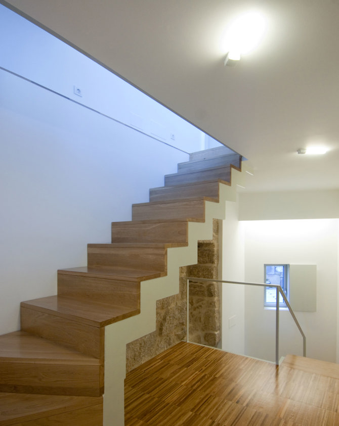 El programa se organiza verticalmente en función de la privacidad. Así, en planta baja se ubica el local comercial, en planta segunda el estudio y en las dos últimas plantas la vivienda dúplex. Esta se organiza en una zona de noche en la planta segunda y la zona de día en la última planta, dadas las condiciones de soleamiento, vistas y espacialidad generadas por la solución de cubierta. La escalera existente se conserva en su primer tramo que será el que dé acceso al estudio y la vivienda. A partir de la primera planta la nueva escalera pasa a ser del interior de la vivienda dúplex.