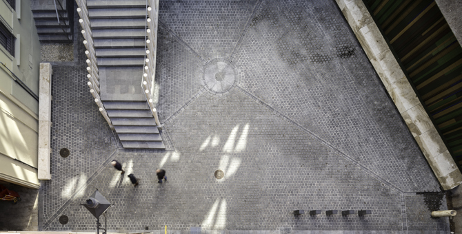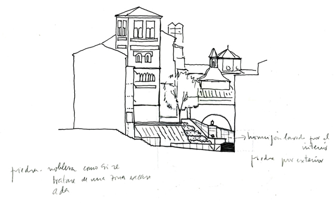 El proyecto pretende mejorar los accesos al mausoleo y dignificar el espacio. Se introducen dos elementos básicos que configuran la plaza: una escalera y una fuente monumental que articula como basamento los dos niveles de esta.