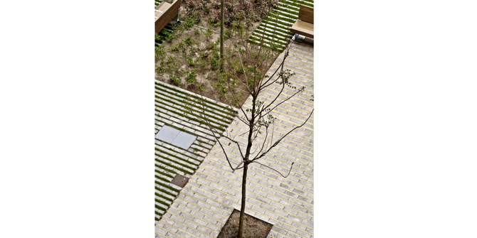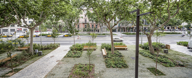 La incorporación de un sistema de arbustivas autóctonas enriquece la biodiversidad y asegura un buen comportamiento drenante del subsuelo mediante la incorporación de un sistema de pavimentos mixtos en el ámbito arbolado. Con la nueva propuesta, el Paseo de Sant Joan ha recuperado su valor social como espacio urbano, considerando al mismo tiempo aspectos clave de biodiversidad y sostenibilidad.