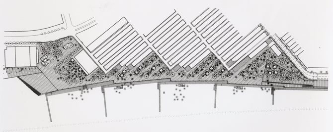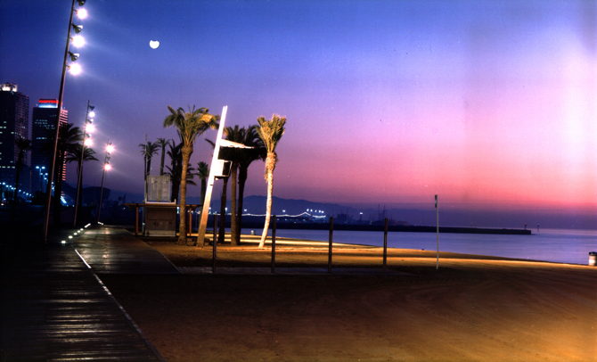 Por tanto, el Paseo Marítimo tiene la doble escala integrada en el barrio, y la de paseo continuo que integra el barrio con la playa como espacio público, el mar, el horizonte, el cielo... El sistema de arbolado es una plantación irregular de palmeras diversas, bellasombras, moreras, tamarindos. La iluminación de la playa con altas columnas inclinadas como grandes cañas de pesca que iluminan la playa para integrarla como espacio público, crea un orden sutil y diáfano.