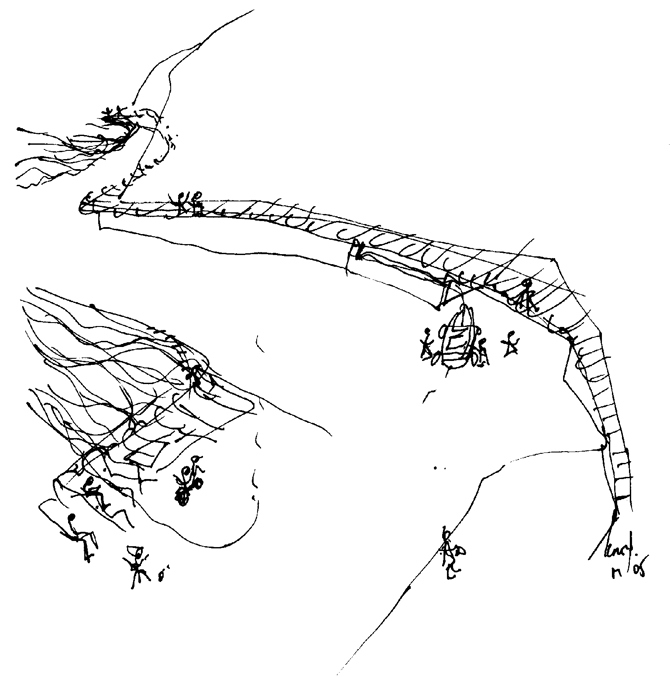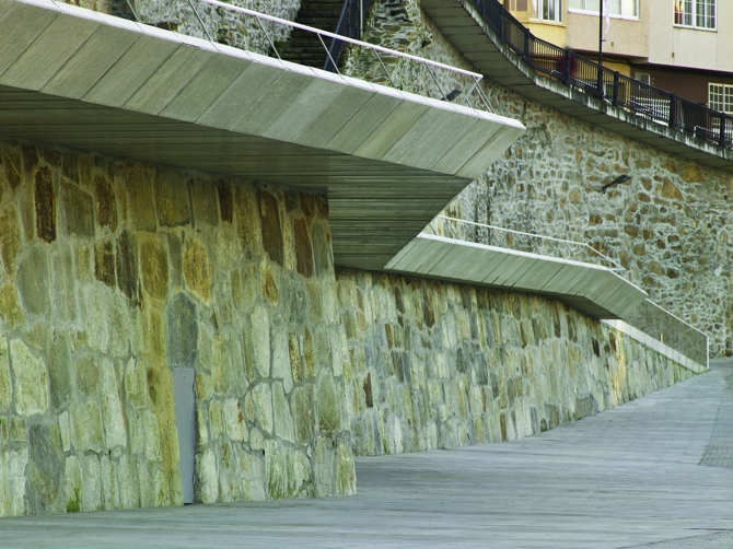La recuperación de los muros sobre los que se asientan las casas, muchos de ellos de piedra, permite la lectura del acantilado, su imagen. Se insiste en las posibilidades de mejora de un caso recurrente en muchas villas marineras de Galicia que, dada su extensión, no admite respuestas de tabula rasa: el hecho de que con el tratamiento de los escasos elementos que se repiten, es decir, de aquellas pautas organizativas, muchas veces ocultas y de presencia descuidada y en sí mismas no atractivas, puede conseguirse una belleza distinta, quizás desestructurada, cubista, pero reflejo de una intencionalidad directa, popular.
