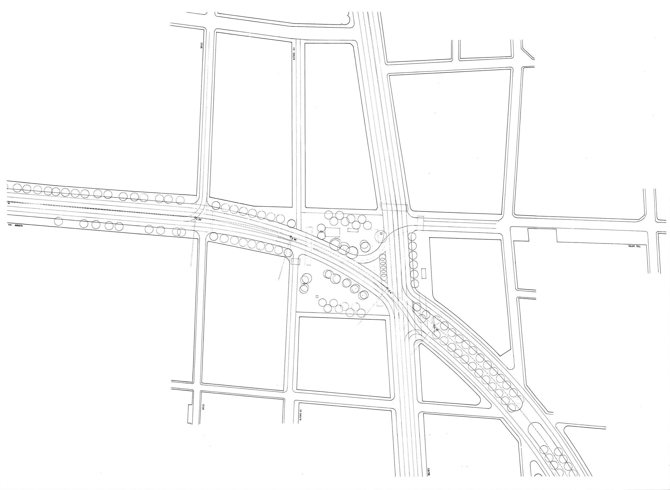 - La ausencia de una dirección clara y vertebradora de la plaza, originada por la confusión que introducen las alineaciones sesgadas de la trama urbana y las grandes avenidas.