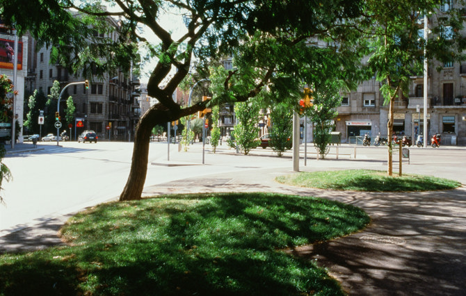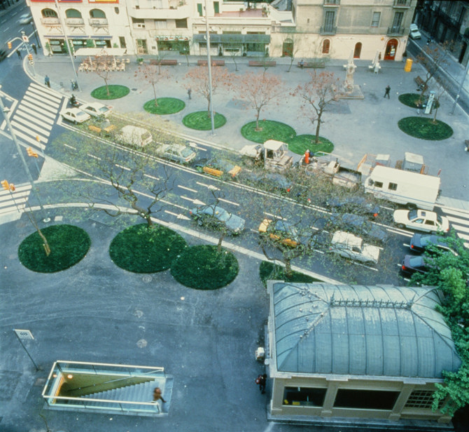- La propuesta incluye un monumento a la revista Dau al Set, en forma de alcorque de granito con una placa de bronce en el centro.