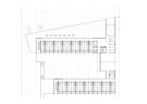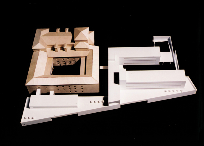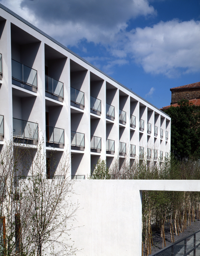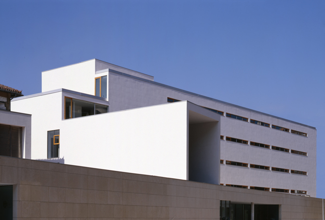 On the one hand, it involved the construction of a new building next to the historical building which would hold all of the welfare services for the permanent care of the elderly. On the other hand, it involved the rehabilitation of the former hospital, to hold different social services and associations. Both buildings were to be related, complementing each other in some way. The rehabilitation of the former hospital will be part of a later project, but to comprehend that of the nursing home, we must refer to the relationship established between the two buildings. The location has excellent characteristics for the use it is meant for. We look to fill a void in the urban weft of Durango, a block that is not only central in location, but also historic. Also located on it are the former church, converted into a theatre, and a health centre. This block will thus be one of public social service buildings. The new building looks to resolve the conflict of the different lineups on the location. The old building will serve as a guide to the proposal. The built volumes of rooms are placed around a new patio that makes up an answer and a continuation to the old building. The new building occupies the lot, enclosing its configuration. The enclosures of the lot are part of the architecture of the whole, modulating interior/exterior permeability. The configuration of the building means that the exterior spaces will be compartmentalized, taking on a smaller scale that will make them easily identified by the elderly residents.