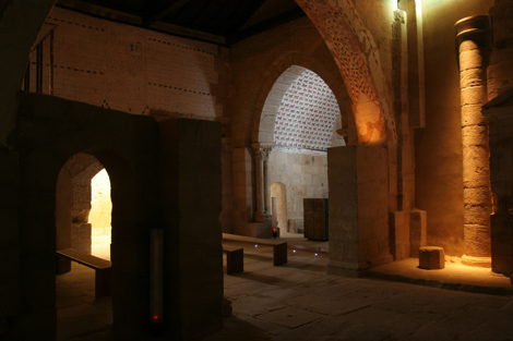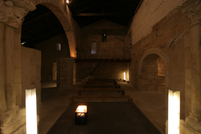 Una de las primeras intervenciones consistió en la demolición de un muro de ladrillo, de fábrica moderna, que se encontraba en el área de acceso a la nave principal, y que suponía un elemento muy agresivo. La intervención en el interior del templo continuó con el picado del cemento que cubría el suelo de la nave, con el fin de mostrar en enlosado original de sepulcros. Del mismo modo se rejuntaron los sillares del interior del templo, y se procedió a limpiar los revestimientos de cal, guardando en todo momento especial cuidado con aquellas zonas que presentaban pinturas murales, ya que estas también fueron sometidas a un proceso de restauración. El coro, situado a los pies de la nave, se encontraba en un estado tan avanzado de degradación que fue sustituido por uno de nuevo diseño.