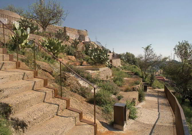 También se mantienen los caminos de acceso actuales, con excepción del acceso desde la calle Marià Lavèrnia, que permitirá acceder al espacio central de las baterías y que estará dotado de los elementos de urbanización necesarios para su uso público.