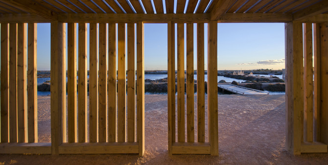 Un paisaje híbrido de naturaleza y cultura fue diseñado por el estudio español EMF, quienes desarrollaron el proyecto “La Tancada” en los campos de sal del Parque Natural Delta del Ebro, en Tarragona. Bajo la necesidad de restaurar un área natural, el proyecto tiene como objetivo transformar las piscinas de una antigua fábrica de pescado en un paisaje líquido, que intenta preservar las poblaciones existentes (de Samaruc español, Aphanius iberus, por ejemplo, que está en peligro de extinción en todo el mundo), proteger la flora (Limonium sp) y multiplicar las condiciones de hábitat para diversas aves acuáticas, creando pequeños lagos de mar.