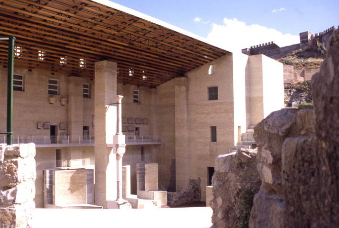 Ese edificio civil, de potente y majestuosa volumetría, restablece los datos espaciales de la Ciudad Antigua. Y los de la actual Sagunto que recompone así su paisaje histórico. Cuando el rotundo escenario cierra su espacio y el cielo vuelve a ser su techo primordial, las piezas del monumento se ponen en relación, el espacio manifiesta su grandiosidad y actores y público en tensión celebran el espectáculo que tiene lugar.
