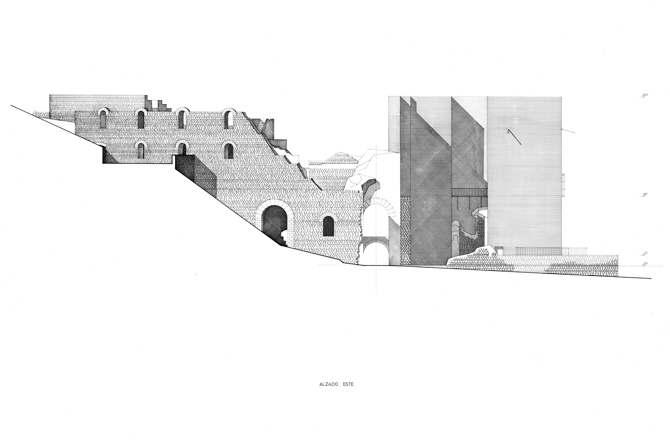 Desde las condiciones concretas que ofrecían los restos del teatro, desde esta vía sin retorno iniciada por las intervenciones realizadas, se debía continuar la restauración, pero cambiándola radicalmente de signo. Había que hacer legibles las alteradas ruinas del teatro. La arquitectura del teatro romano de Sagunto estaba allí presente, en los restos existentes, solo era necesario hacerla aflorar. Pero se trataba de la restauración de un edificio, de rehabilitar arquitectura. Y la arquitectura solo se reconoce en el espacio real, con sus dimensiones, sus proporciones, su escala.
