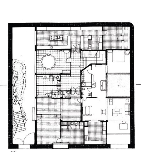 Una magnífica balsa de regadío se convirtió en restaurante y el proyecto procuró no alterar y resaltar el antiguo depósito. El nuevo acceso, las cocinas, las dependencias auxiliares y un pequeño apartamento alrededor de un patio se situaron donde antes estaba el agua.