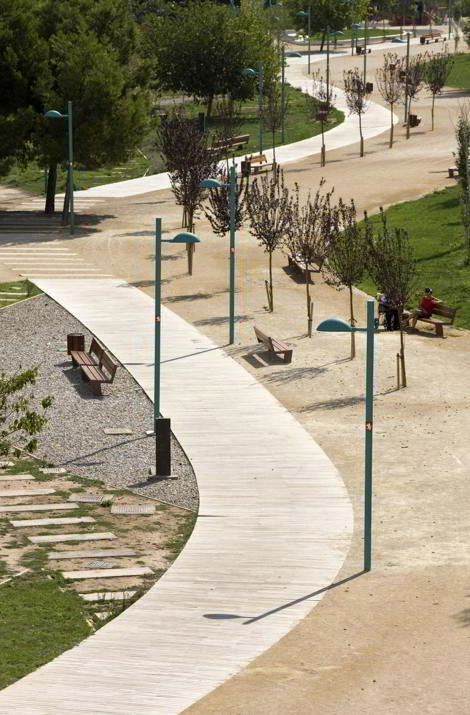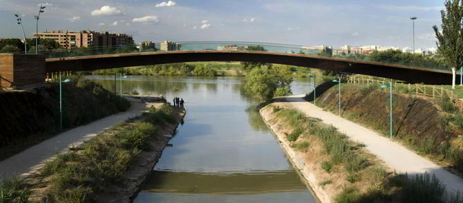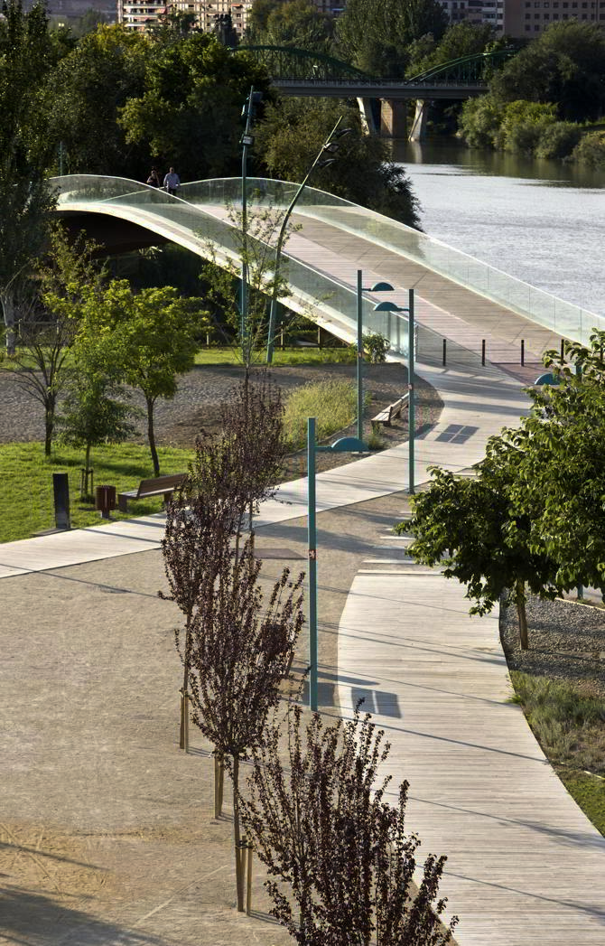 El proyecto favorece la conexión peatonal del centro de la ciudad hacia el medio natural periurbano: el soto de Cantalobos y el parque fluvial del río Gállego. Establece un entramado de circulaciones longitudinales a lo largo del ámbito de actuación, que permite diferenciar aquellas vinculadas al tráfico rodado, ciclista o peatonal —propias de la ciudad— de las vinculadas a las circulaciones acuáticas, deportivas, recreativas y peatonales —propias del ámbito natural—.