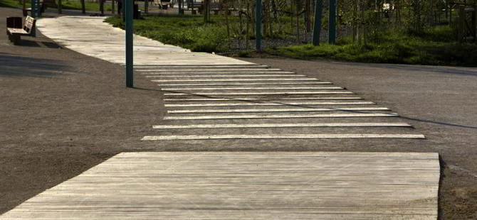 Dicha redistribución soluciona los problemas de accesibilidad y genera, mediante el aporte de tierra, espacios vinculados a la cota de ciudad. El perfilado de la pendiente del talud actual, junto con el desbroce y la limpieza del soto de ribera, permite recuperar la relación fluida —tanto peatonal como visual— entre la ciudad y el medio natural.