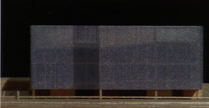 La fachada está formada por una chapa de aluminio minionda perforado que ofrece una variación día/noche manifestándose opaco o translúcido según sea el sentido de la luz.