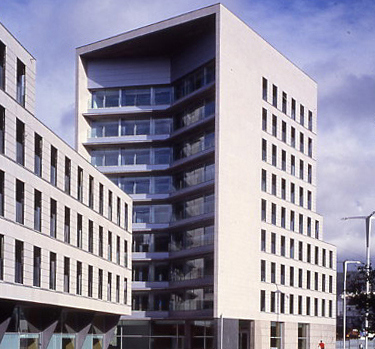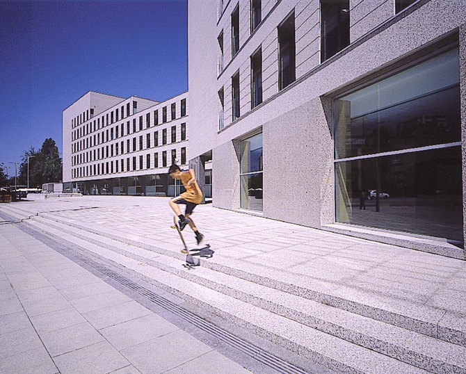 Los dos volúmenes se complementan y ayudan en la definición de la imagen exterior del conjunto, en donde las distintas escalas de los edificios vecinos y la difícil formalización y cierre de la plaza de la Estrella parecían factores determinantes para que pudieran solucionarse con un único edificio.