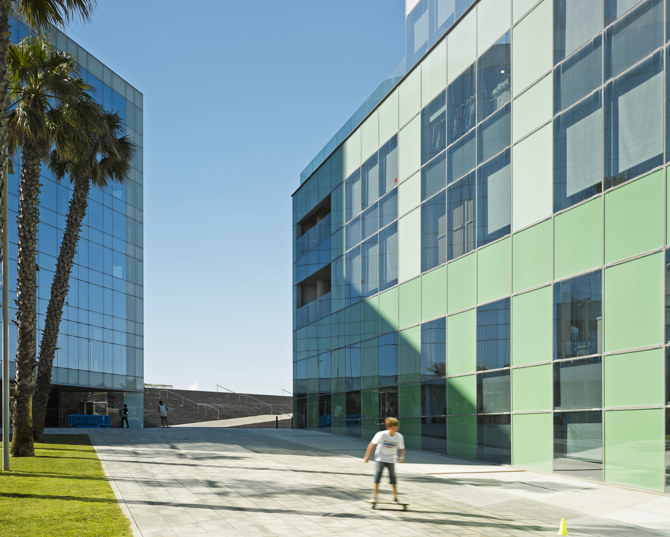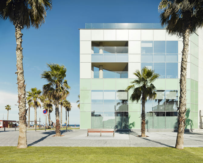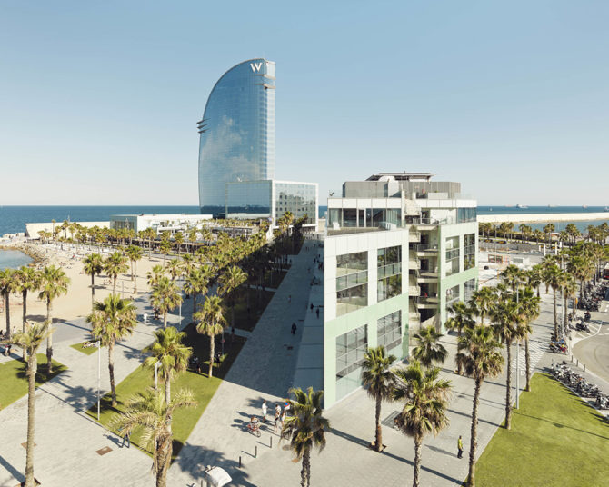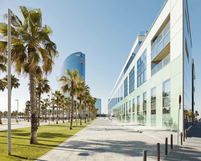 La nueva sede de la compañía global Desigual goza de una situación única en el frente marítimo de Barcelona junto al animado paseo de la Barceloneta y el hotel W.