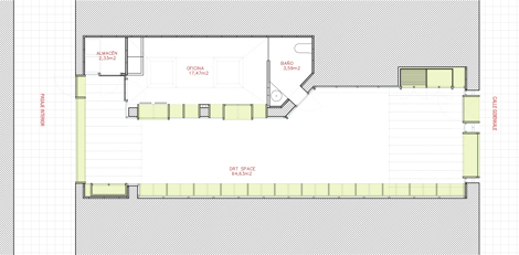 La sede del club local de rugby de Durango se ubica en un bajo de 90 m2 de un edificio de viviendas entre medianeras en el casco antiguo del municipio. Todas las hileras de casas del casco cuentan con una fachada principal a una calle pública y una segunda fachada a una pequeña calle semiprivada de unos 2,5 m de ancho que actúa de separación con la siguiente hilera. A este pasaje secundario al cual nuestro edificio se abre, siempre se le ha dado la espalda, ha sido utilizado como tendedero de ropa, almacén de los bares, zona de instalaciones... Este local en particular, además de las dos fachadas anteriormente mencionadas, cuenta con dos entradas de luz cenitales desde un patio del edificio.