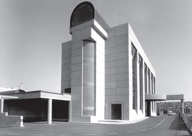 La relación entre espacio físico y expresión simbólica en la construcción de la arquitectura de la ciudad de hoy surge como una relación de permanente escisión y antinomia, máxime en edificios como el tanatorio de la M-30, donde sus formas y símbolos nos aproximan a contemplar un horizonte del tiempo como infinito.