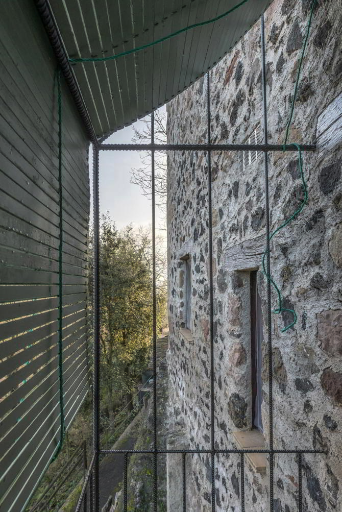 Y, finalmente, una estructura ligera de acero corrugado, bien tensa y bien ligada, que sustenta el asiento y el respaldo de la silla mientras aguanta la tensión de la anea; donde reposan nuestros pies y los de la silla; que cuida del cayendo y de la forma de las persianas de cuerda. Vamos, ¡que al final también hemos tenido que construir un balcón!