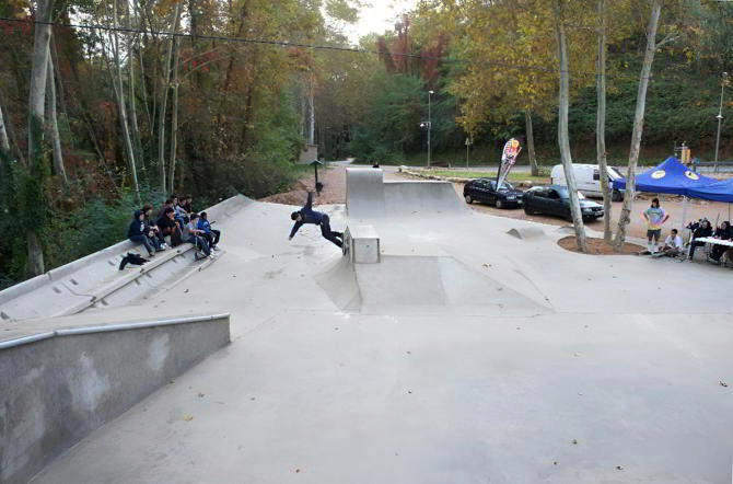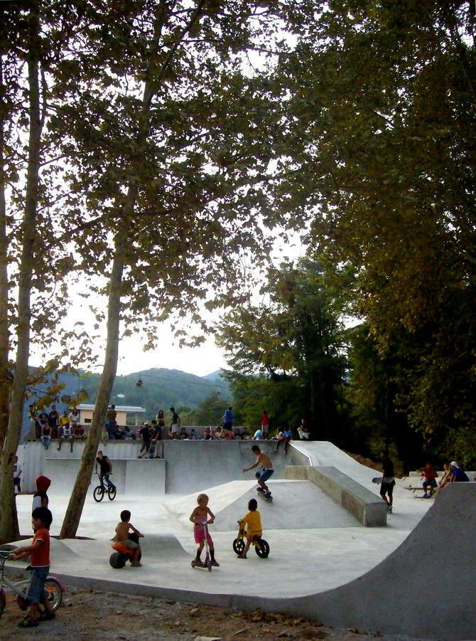 A pesar de estar enclavada en un entorno natural privilegiado entre el Montseny y las Guilleries, Arbúcies había desarrollado una fuerte actividad industrial vinculada a la fabricación de carrocerías de automóviles. La crisis económica afectó profundamente a esta estructura productiva, dejando a muchas familias en situación precaria. En este contexto, los jóvenes de la localidad —hijos de ese mestizaje social consolidado en las décadas anteriores— expresaron su arraigo reclamando un lugar adecuado donde patinar, pues los espacios públicos existentes no respondían a sus necesidades. A través de un proceso de encuentros y talleres, se consolidó la idea de ubicar el nuevo skatepark en Can Pons, una zona de reciente urbanización en el perímetro del pueblo, destinada a equipamientos deportivos. El Ayuntamiento destinó una partida presupuestaria complementada con la colaboración de Idensitat y el Consejo Superior de Deportes, y con el inestimable valor de la mano de obra voluntaria, los materiales reciclados y los servicios de la brigada municipal.