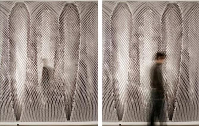 El espacio generado pasa a ser más importante que el espacio interpretado: son esculturas ensimismadas, que no referencian un espacio (público) construido y condicionante. Para la muestra, se construye una envolvente neutral, blanca y continua, no condicionante, para que las piezas brillen en su individualidad y aislamiento, una envolvente de origami fabricada con la ligereza y transparencia del papel. Un montaje reciclable que permita dar a las piezas la escala y el entorno que merecen.