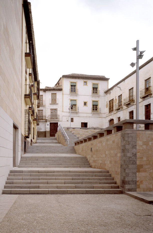 El nuevo edificio, que sustituye al viejo cine Acci, se sitúa dentro del núcleo histórico de la ciudad de Guadix, en una relación privilegiada con espacios urbanos y arquitecturas de singular significación para la ciudad. Así, su acceso principal se produce desde un lateral de la Plaza de las Palomas o de la Constitución, llamada también en el S. XVII, Plaza Mayor o Plaza de los Corregidores. Se trata de una plaza porticada construida sobre los restos de una anterior musulmana realizada en distintas épocas desde la reconquista hasta Carlos V, Felipe III y finalmente reconstruida en la postguerra después de los incendios de 1.936. Está presidida en uno de sus laterales por el edificio del Ayuntamiento, con su fachada denominada Balcón de los Corregidores y sobre el lateral opuesto, en el que se sitúa una puerta de comunicación a la inmediata plaza de la Catedral, en donde destaca, sobre los aleros de la Plaza porticada, la silueta de la Torre y fachada principal de la Catedral de Guadix.