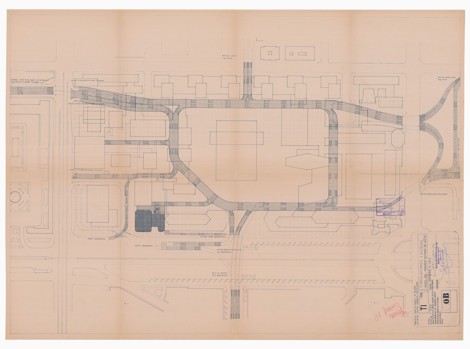 Circulaciones primer sótano - Servicio Histórico del Colegio Oficial de Arquitectos de Madrid (COAM). Fondo Archivo de Visado -