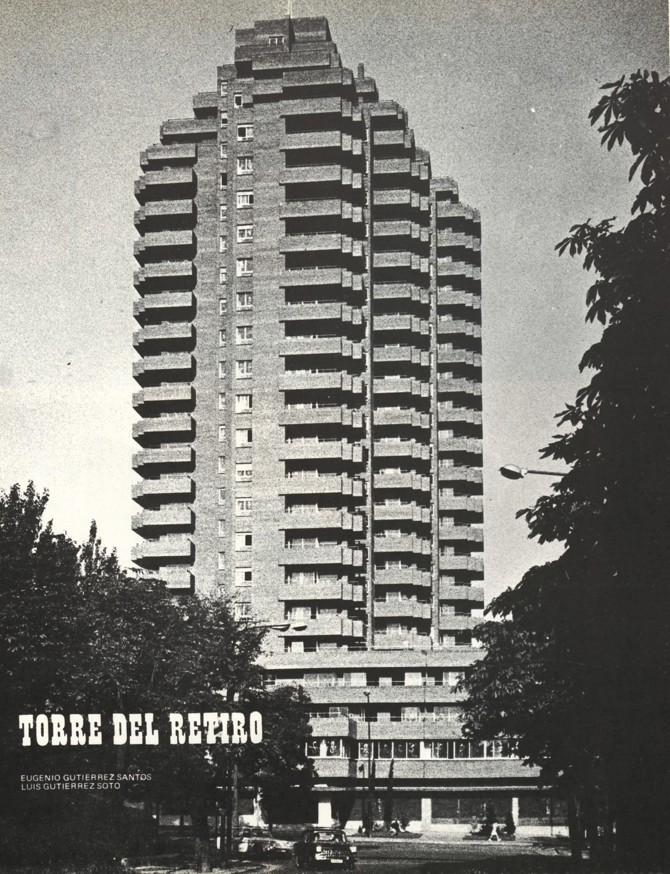 La Torre del Retiro es un bello edificio de pequenos pisos y apartamentos en un emplazamiento excepcional frente al Retiro. El tema no es nuevo, creo es el mismo de las famosas Torres Blancas de Sáenz de Oiza pero con una visión y escala diferente; en realidad es un problema inmobiliario como otro cualquiera, donde el acierto de una magnífica disposición en planta verdaderamente lograda, dando todos los pisos y apartamentos sobre el Retiro, ha constituido un éxito de venta impresionante; y donde tanto la plástica de su volúmenes y fachadas así como los materiales y estructuras empleados responden a unas exigencias económicas que son las que han marcado las características del proyecto.