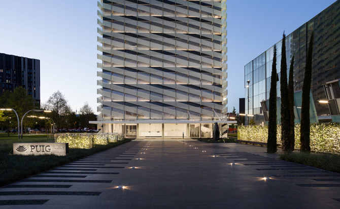 El proyecto data de 2007, cuando Caixa Catalunya encargó al arquitecto Rafael Moneo una torre en la Plaza de Europa. Pospuesta su ejecución, dadas las circunstancias del mercado inmobiliario, el proyecto interesó a la compañía Puig para establecer en ella su sede corporativa, comenzando los trabajos de construcción de la misma en el año 2012, en colaboración con los arquitectos barceloneses GCA Arquitectos Asociados.