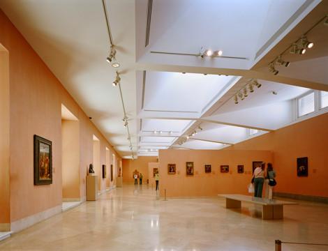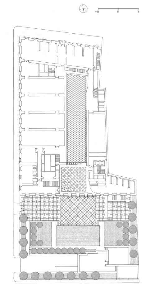 La nueva planta, el nuevo palacio, el Museo Thyssen-Bornemisza iba a arrancar de lo que fuera el episodio último en la evolución del viejo Palacio de Villahermosa: la fachada norte, la fachada sobre el acceso ajardinado. Esta fachada, que paradójicamente apenas se había contado en la definición del sistema de muros del palacio, iba a ser el punto de arranque de los nuevos espacios palaciegos que debían dar forma al museo.