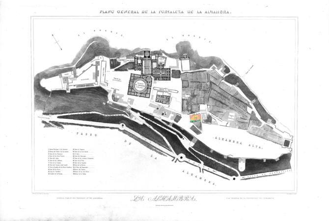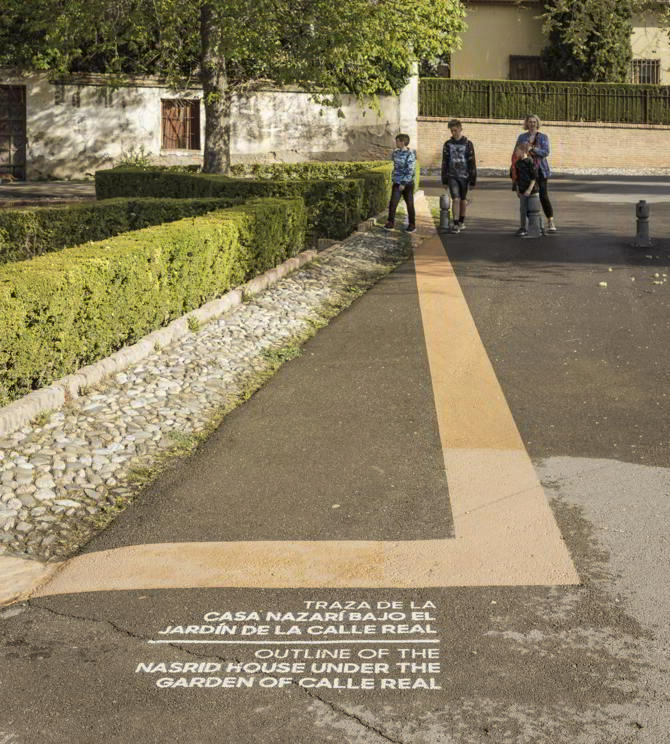 El punto de partida es dar a conocer que bajo este jardín hay una casa. Son los restos arqueológicos de una estructura doméstica nazarí que se ubicaba en el eje urbano de la medina medieval. Una estructura que aún podemos intuir en planos del siglo XIX y que despareció en la segunda mitad del siglo XX. Entre las décadas de 1940 y 1960, la parte alta de esta calle sufrió una profunda transformación: se demolieron edificios, se levantó una tapia, inicialmente temporal, dotando de una nueva alineación a la calle y se concibió una nueva explanada ordenada con un nuevo jardín triangular que funcionara como una glorieta de tráfico. En 1963, durante el proceso de las obras se localizaron los vestigios de esta casa, realizándose en ese momento un levantamiento de la excavación. Finalmente, los restos acabaron cubiertos bajo el jardín, a excepción de un pequeño tramo de muro emergente en uno de los laterales. El ámbito ha permanecido prácticamente igual desde esa última reforma urbana.