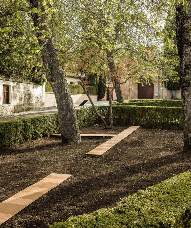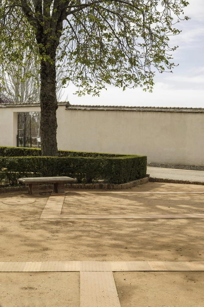 La calle Real de la Alhambra ha permanecido en continuidad, desde la época medieval hasta nuestros días, como parte viva de la ciudad. Una zona en la que, además del tránsito de turistas y trabajadores, aún podemos encontrar comercios, establecimientos e incluso casas con vecinos. Esta vía a lo largo de los siglos ha sufrido múltiples transformaciones, afectando a los usos, a su traza urbana y al tejido edificatorio. Parte de los trabajos que hemos desarrollado en el contexto de la Alhambra han puesto el foco en los espacios públicos del conjunto, tanto en el estudio e investigación de su evolución histórica como en sus usos contemporáneos. En este caso, el trabajo se concentra en la zona alta de la calle, en el entorno del jardín triangular que concluye la zona de accceso libre antes de acceder al recinto de la visita del Secano. La intervención materializa una reflexión como un paso previo para comenzar una convensarción en el marco de un trabajo sobre el conjunto del ámbito de la calle Real.