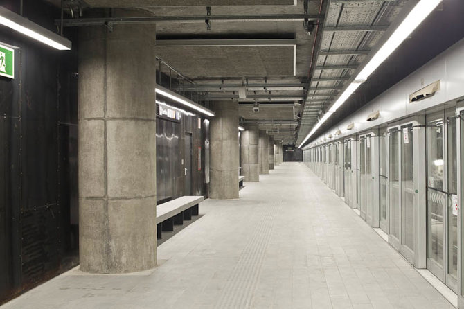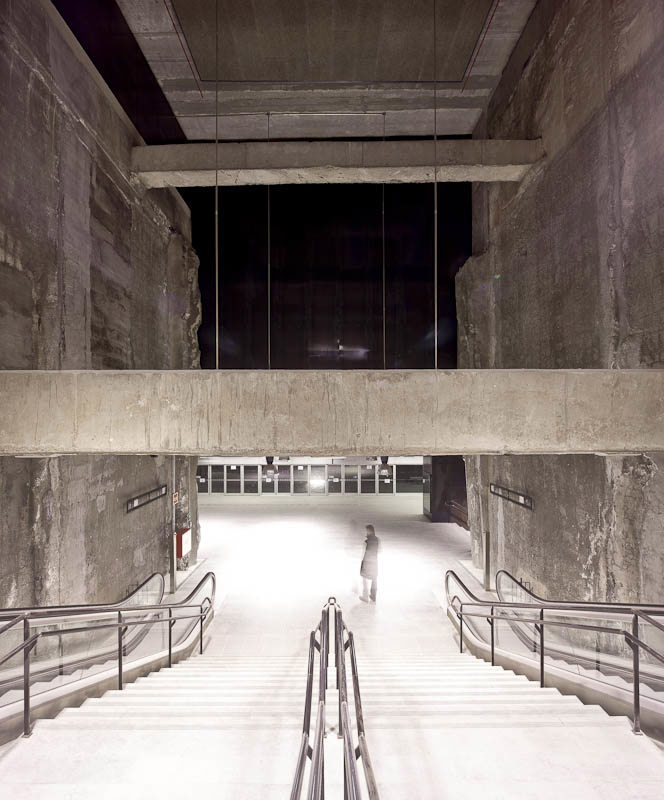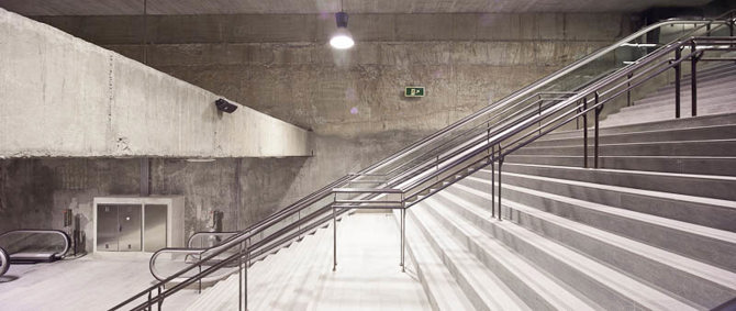 Queremos un espacio más geológico que edificado, siguiendo la clásica lógica que el “sitio”, en el sentido más profundo del plazo, es fundamental en la resolución de cualquier programa arquitectónico. Por lo tanto, se propone el uso del menor número posible de materiales, aprovechando preferentemente los que ya están presentes en la obra civil-estructural, como son los muros-pantalla, los puntales de la construcción, los forjados prefabricados, etc.