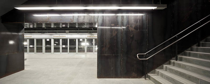 Otro tema argumental del proyecto gira en torno a la exigencia de cerrar con puertas las vías de los andenes. Este hecho se integra como un elemento positivo para la composición general de la propuesta. El cierre es total y el proyecto se convierte también en un ejercicio de fachadas, fachadas enteras que buscan un dominio absoluto de las secciones.