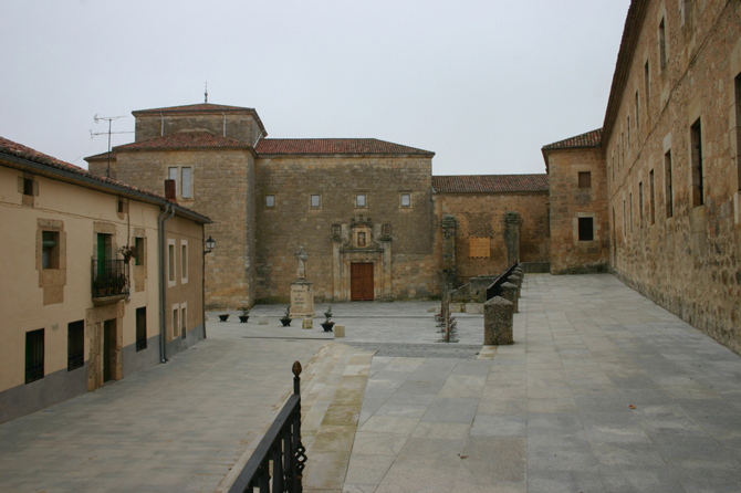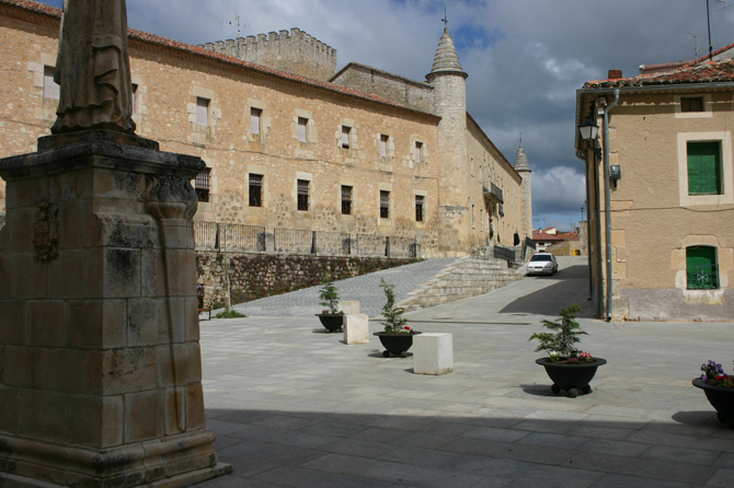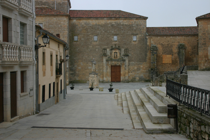 La plaza se configura principalmente con la disposición de dos edificios singulares como son la actual iglesia de Santo Domingo y el Real Monasterio de Santo Domingo, en sus orígenes una capilla ubicada en el lugar donde nació el santo y la casa solariega de los Guzmanes, respectivamente. En la actualidad, nos ha llegado una plaza reformada con una actuación que se puede datar por sus características de los años sesenta y setenta.
