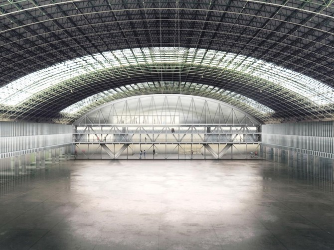 En cuanto al interior del mercado, el reto de la ciudad postindustrial, y en particular la de la ciudad de Torrelavega, radica en encontrar nuevas oportunidades y en integrar nuevos usos en los edificios emblemáticos, como es el caso del Mercado Nacional de Ganado. Por ello, la estrategia propuesta consiste en relocalizar los usos de administración y servicios ubicados en el volumen lateral del edificio, para integrarlos en una nueva banda intermedia que, a modo de membrana, permite compartimentar el espacio principal en dos grandes ámbitos. Con ello, se podrán simultanear usos, solapando el mercado de ganado con otras actividades propuestas de carácter público y urbano.