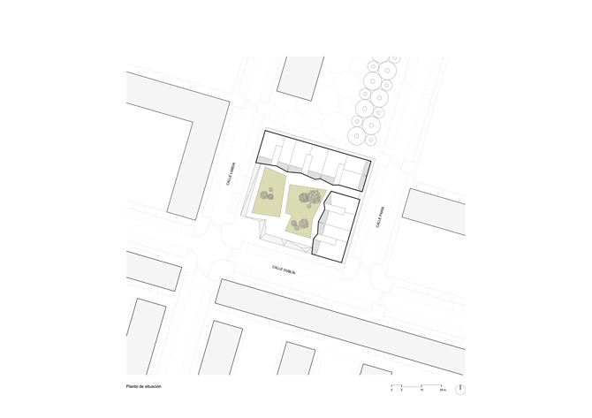 La experiencia del confinamiento ha servido para evidenciar con sonrojo las “trampas” en las que viven muchas personas, a la vez que ha puesto en crisis la forma de entender el espacio común, provocando nuevas tendencias en la forma de relacionarnos. Este proyecto trata de atender las relaciones con nuestros vecinos: se entiende el conjunto construido como una única unidad residencial, desdibujando los límites entre lo común y lo privado en una transición en la que podríamos distinguir cinco niveles: