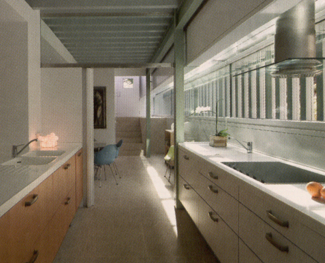 La vivienda se levanta en dos niveles: el inferior recoge la vida familiar diaria; el superior aloja, en un espacio diáfano, la zona de estar y biblioteca, dispone una terraza. Si el cuerpo inferior pétreo es recogido, el superior se abre al paisaje con grandes ventanales que compensan la escasa luz solar. Debido a la profundidad del piso inferior, en la fachada norte se abre un gran lucernario y celosía con vistas a una plantación floral, equilibrando la sensación luminosa.