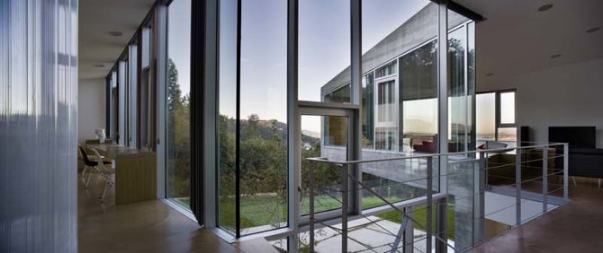 La primera visita a la parcela supuso la voluntad de mantener la visión dominante sobre el paisaje que se tenía a la cota de acceso y hacer que la casa fuera la forma de descender desde esta situación hasta la cota inferior del terreno, con todos los matices que estas diferentes alturas ponían en la mirada.